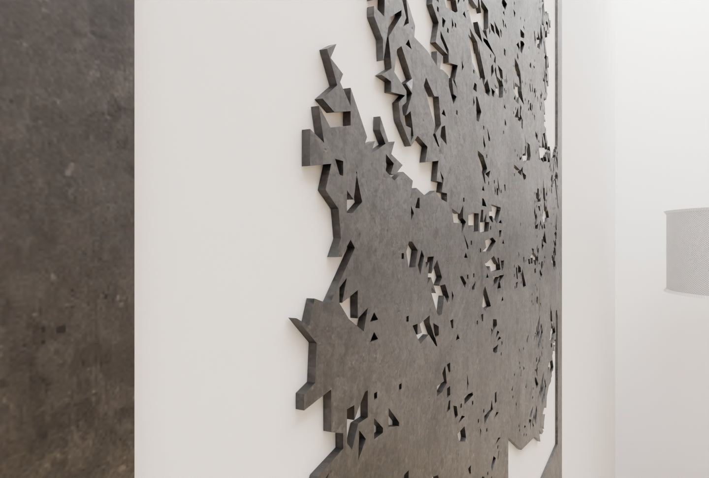 Each piece is crafted as a “drawn sculpture”, a perfect balance between two-dimensional artwork and three-dimensional presence. Whether it’s the silhouette of a tree, the veins of a leaf, or a striking abstract form, the iron cut reveals beauty in both simplicity and detail, creating an elegant and captivating atmosphere.