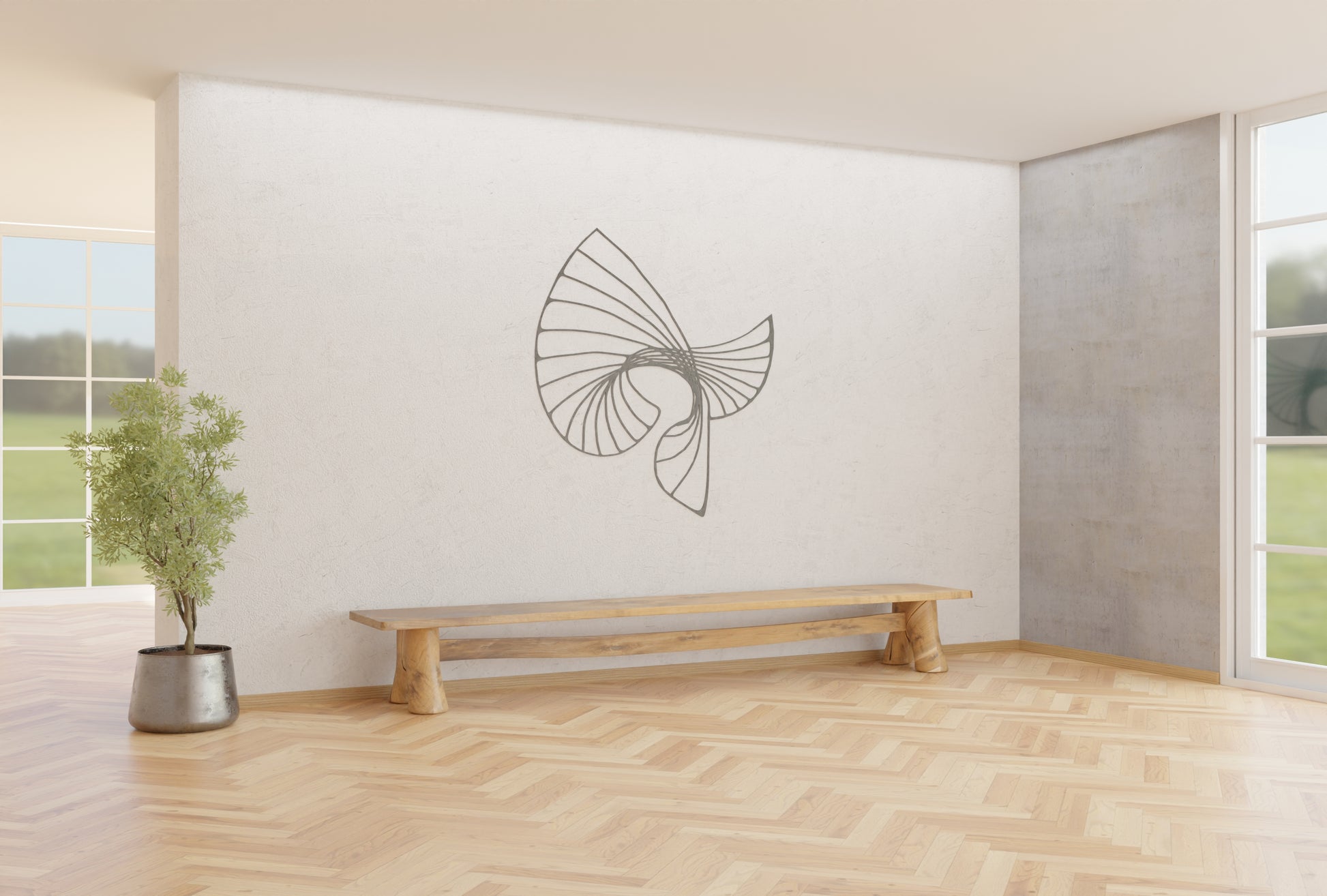 Each piece is crafted as a “drawn sculpture”, a perfect balance between two-dimensional artwork and three-dimensional presence. Whether it’s the silhouette of a tree, the veins of a leaf, or a striking abstract form, the iron cut reveals beauty in both simplicity and detail, creating an elegant and captivating atmosphere.